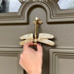 Then to attach the knocker I made very small pilot holes where the dragonfly knocker needed to go. Then screwed it in by hand.